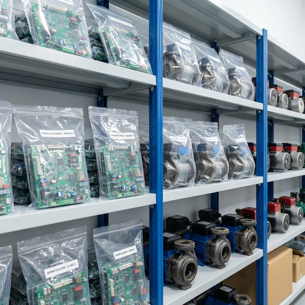 paralelamente a repuestos nuevos de los fabricantes más representativos (Saunier Duval, Baxi, Junkers, Vaillant, Daikin, Mitsubishi, Haier, Fujitsu…) y otros con presencia más restringida.